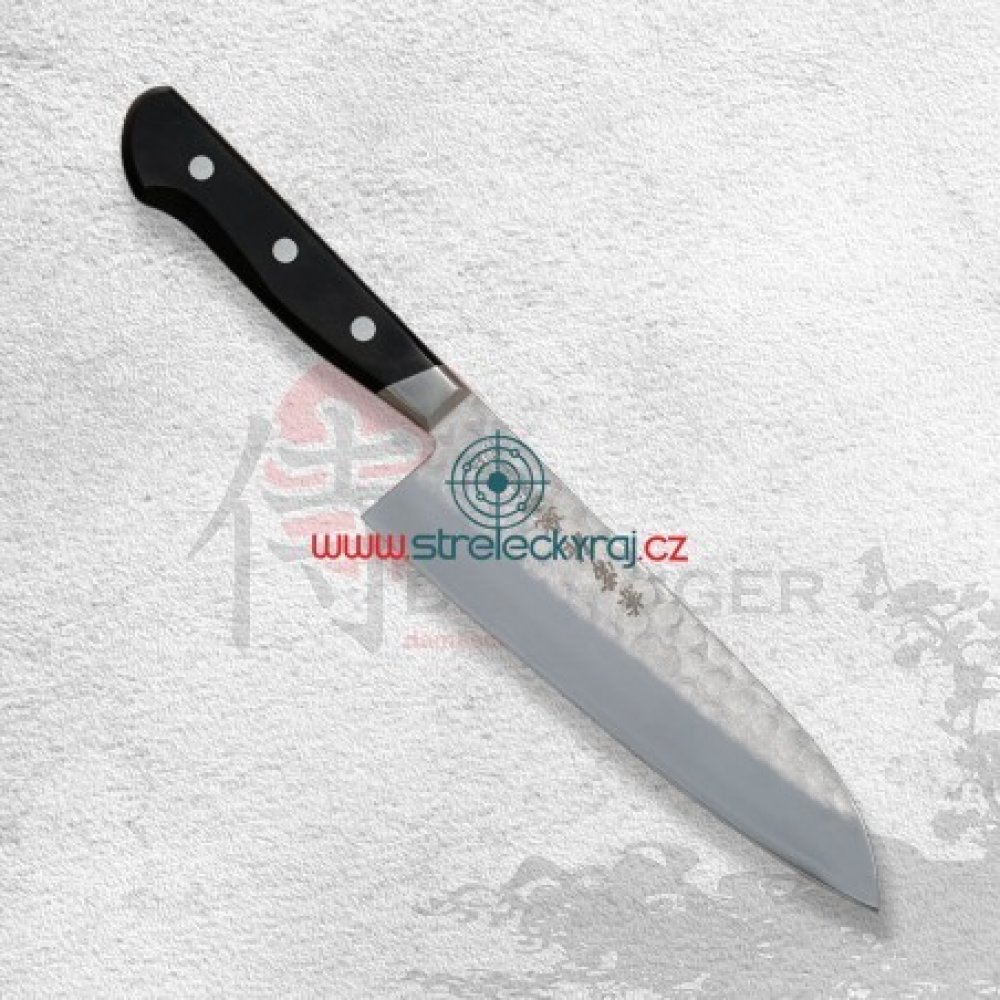 japonský kuchařský nůž Santoku 180 mm Kanetsune YH-3000 series . Kuchařský nůž Santoku 180 mm Kanetsune YH-3000 series. Santoku znamená ''tříúčelový'' nebo ''tří ctností'. Tento název získal proto, že se výborně hodí ke krájení masa, ryb a zeleniny. Nůž Santoku je často doporučován jako víceúčelový pro domácí kuchaře a v japonských domácnostech se vyskytuje častěji než nůž Guyto. Má vyšší čepel ne...