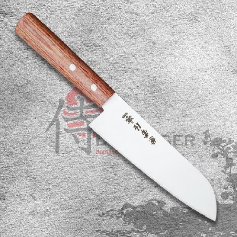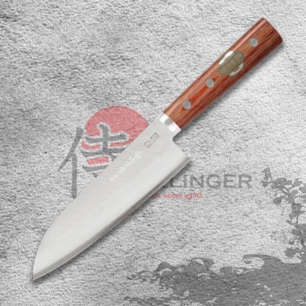 ✅ japonský nůž Santoku 165 mm Kanetsune Hon-Warikomi 2000-series z oceli Takefu Shiro-2 a SUS 410. Pro zachování ostrosti nůž ručně omyjte a ihned osušte.