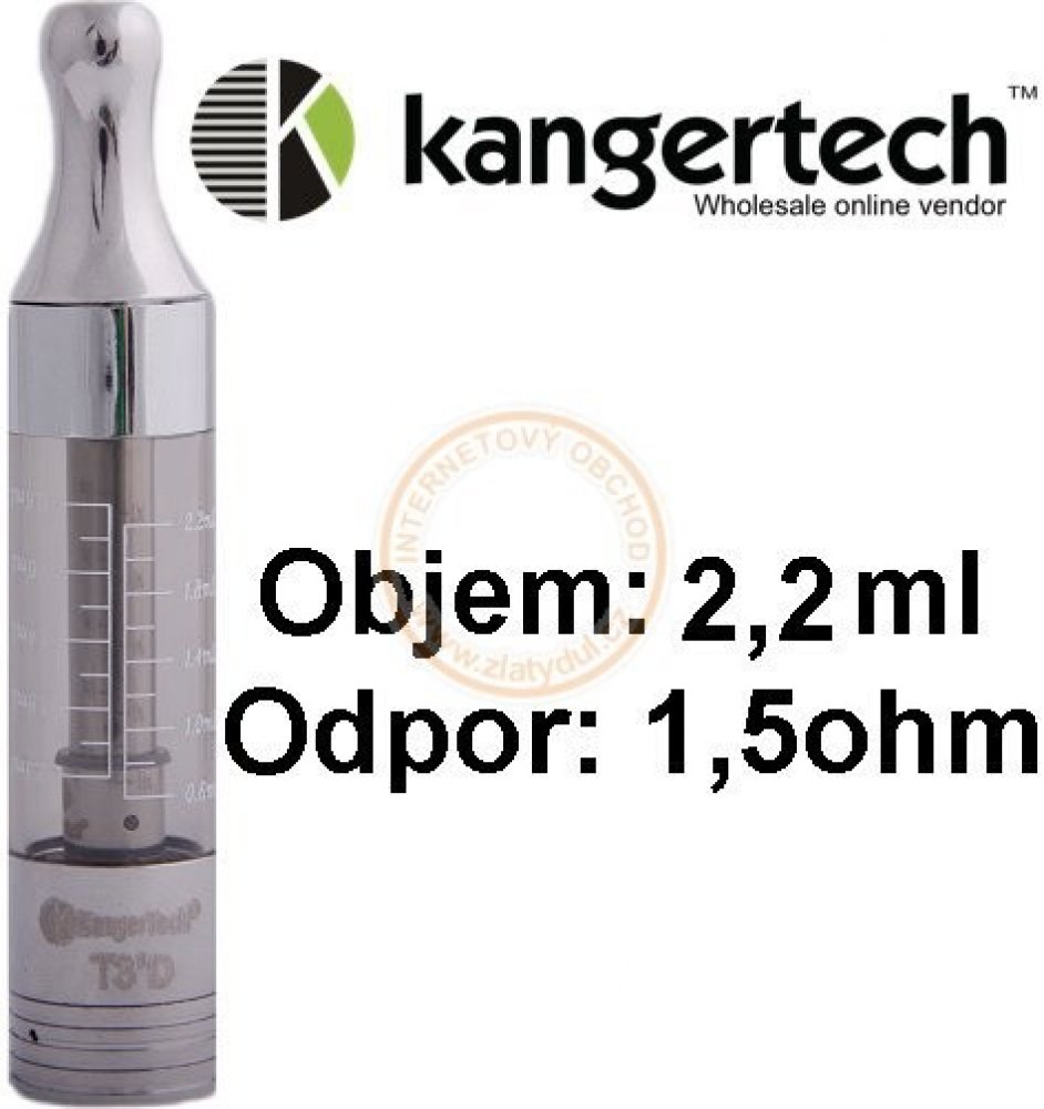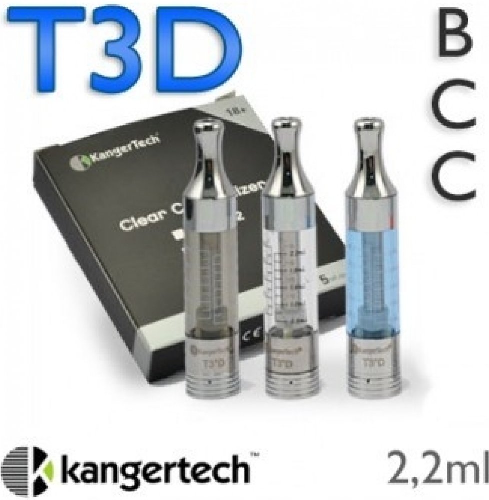 Clearomizer Kanger T3D má objem 2,2 ml a je kompatibilní se všemi eGo 510 závity. Je vybaven odnímatelným náustkem z nerezové oceli. Je možné jej vyměnit za jakýkoliv náustek typu 510. Má vylepšený systém proudění vzduchu. Právem tedy patří mezi favority nejen pro začínající ekuřáky.