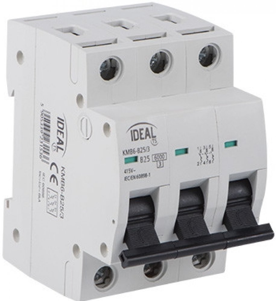 Jistič, jističe, 3 fázový, třífazový, třífázové, trojfázový, elektrický, elektro, bytový, zásuvkový, motorový, proudový, 3p, p, třípólový, trojpólový, pro, montáž, na, DIN, lištu, do, rozvaděče, hlavní, třímodulový, trojmodulový, slouží k ochraně elektrických obvodů proti přetížení a zkratu.