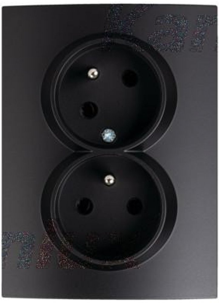 Dvojitá zásuvka s uzemněním, kompletní s zachovanou fázi, to znamená, že fáze je vždy na levé straně při pohledu ze předu na zásuvku. Zásuvka má také clonky. Zásuvka je určena pro montážní krabičky větší než O60mm (nejméně O68mm). Kompletní zásuvka nevyžaduje další rámeček.