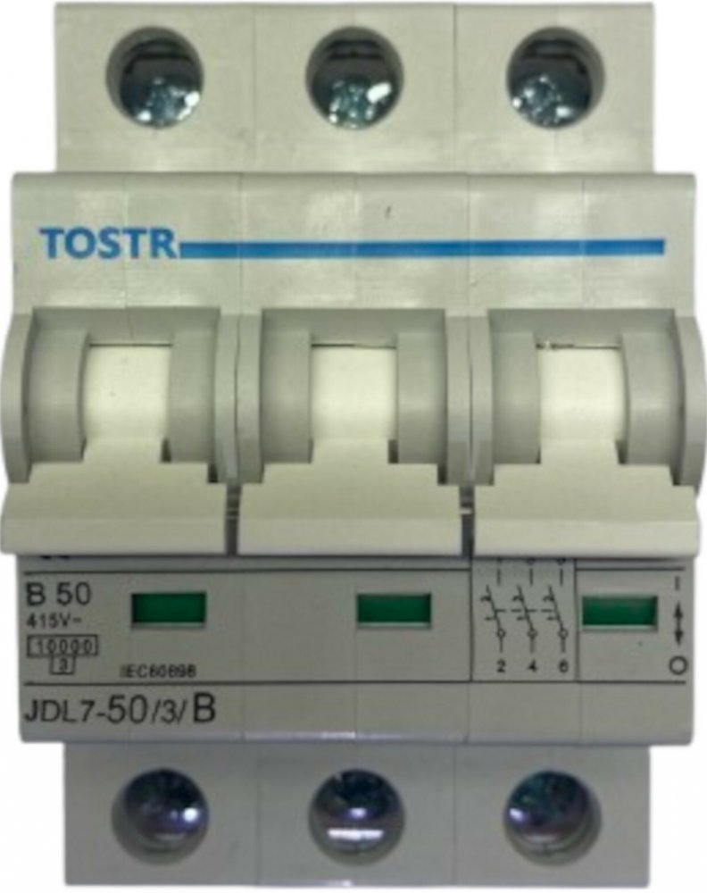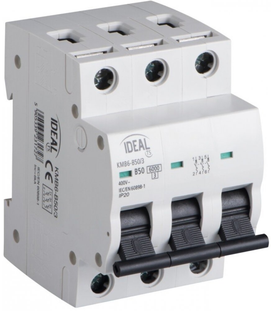 Popis: Jistič Kanlux KMB6 je rozměrově shodný s jističi, Eaton (Moeller), 50A/3/B počet pólů 3, vypínací charakteristika B, jmenovitý proud 50A, jmenovité napětí 400V. Shoda s normami EN60898-1/IEC60898-1.