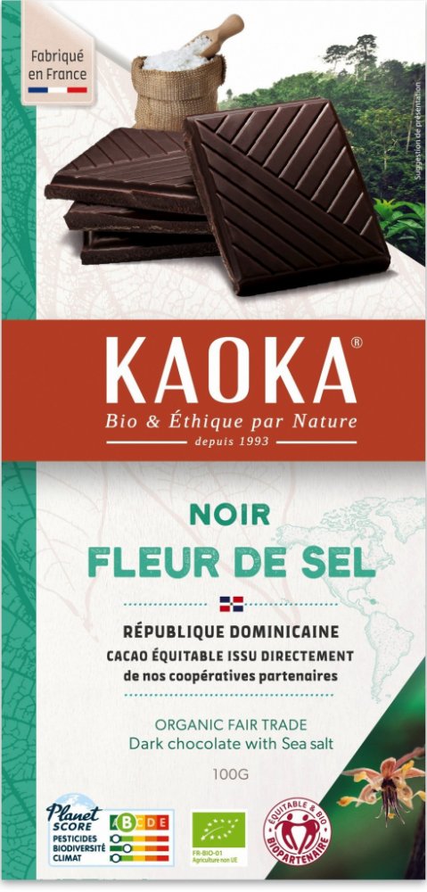 Francouzská čokoládová elegance s mořskou solí! Gourmet hořká čokoláda s 70 % kakaové sušiny, ochucená jemnými krystalky mořské soli Fleur de sel (0,5 %). Vyrobeno bez přidaného kakaového másla a bez emulgátorů. Kakaová hmota pochází z Dominikánské republiky, většina surovin z fair trade projektu Bio Equitable. Chuť je intenzivní, zemitá, s květinovými tóny růže a jasmínu. Vhodné pro vegany.