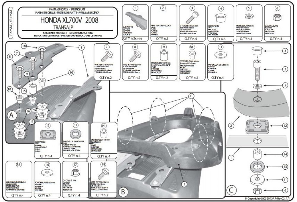 Kappa K225M Nosič zadního kufru pro kufry MONOLOCK pro HONDA XL 700 V Transalp (08-13) nosič zadního kufru (topcase) pro MONOLOCK kufry. Pro uchycení kufru se využije plotna, která je dodáváne společně s kufrem.HONDA XL 700 V Transalp (08-13) - dodáváno včetně plotny MONOLOCK®