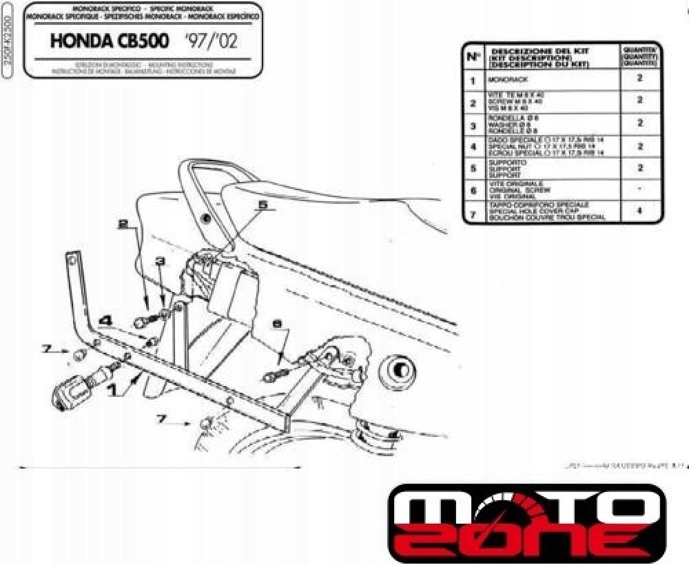 Nosič horního kufru Kappa K2500 Honda CB 500 (97 > 05) CB 500 S (00 > 05).