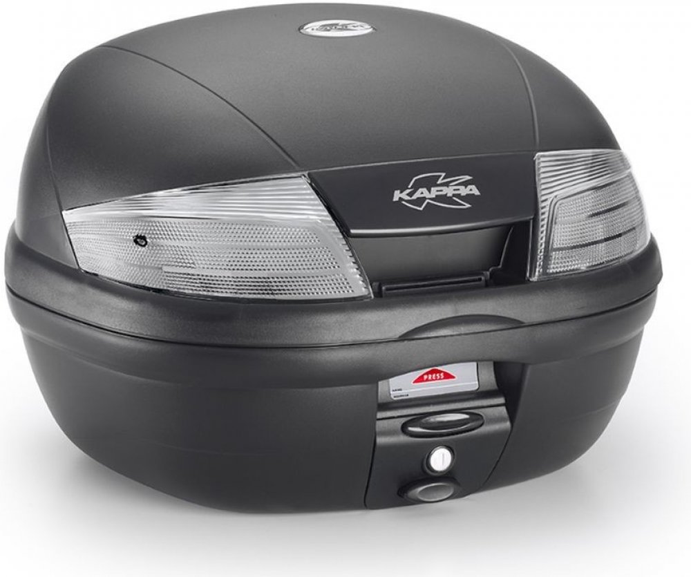 Vrchní kufr s uchycením MONOLOCK® o objemu 35 litrů, vyznačující se kouřovými reflektory
