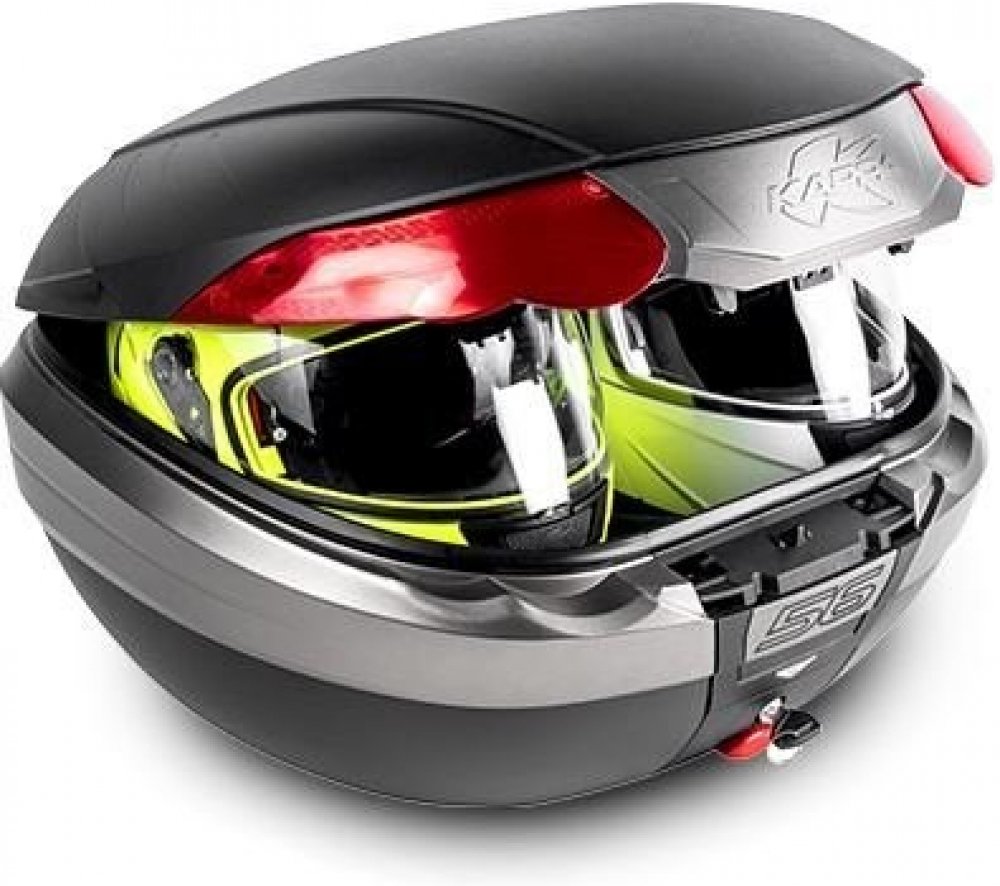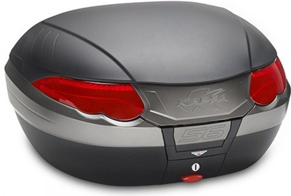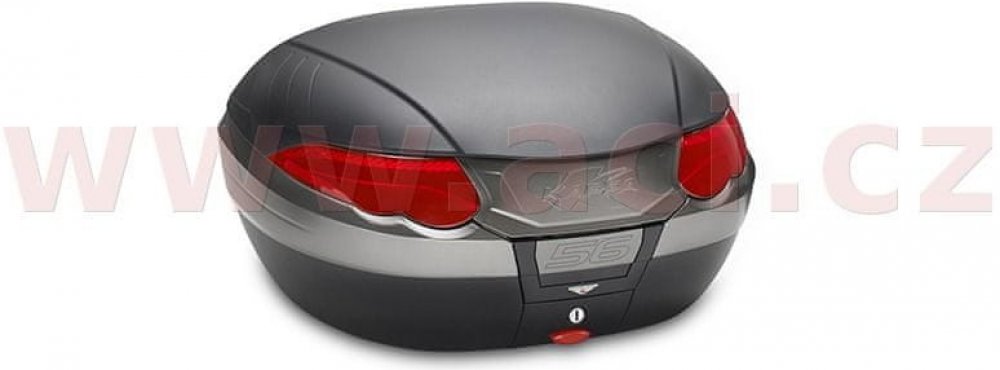 Plastový vrchní kufr s objemem 56L a maximální nosností 10kg.