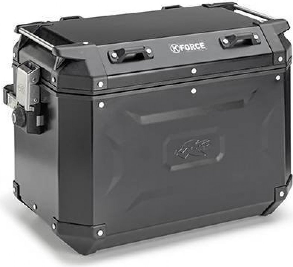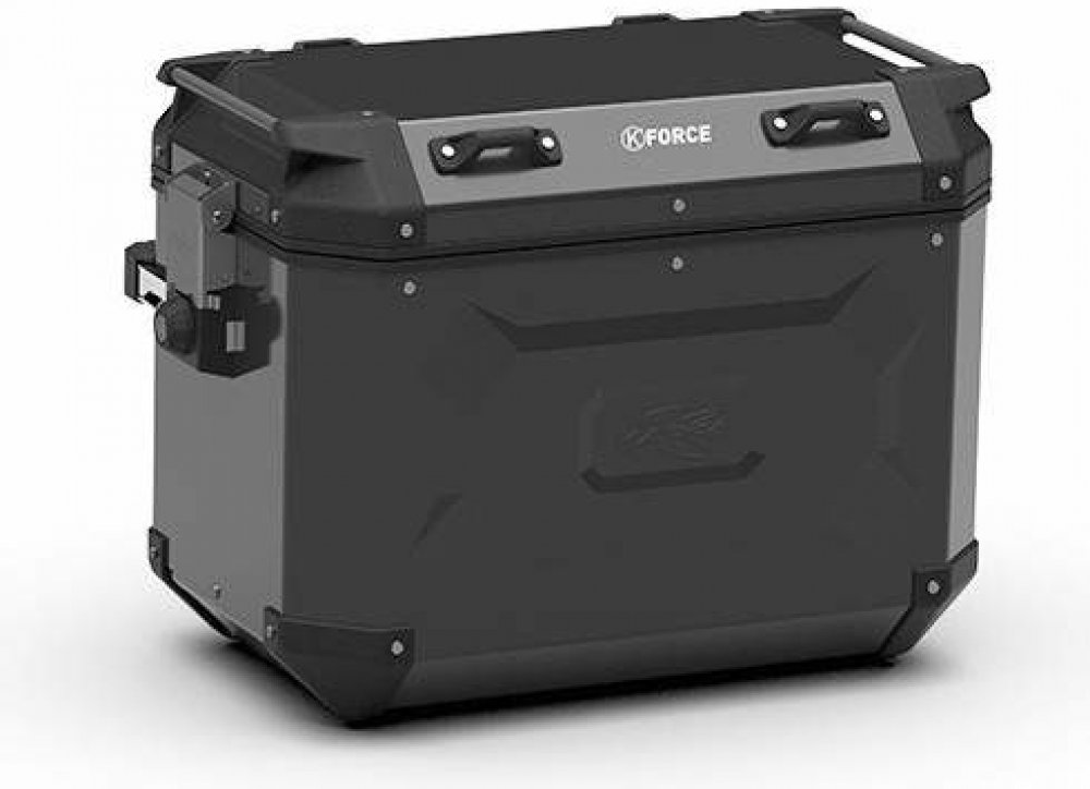 Hliníkový boční kufr Kappa K´Force je vyroben v Itálii podle originálního a patentovaného designu. Je z pevného hliníku o tloušťce 1,5mm a na okrajích je vyztužený technopolymerem. Má kovové rukojeti a 4 poutka na pásek, pro uchycení menších zavazadel. Typ uchycení Monokey je u kufrů na motorku nejznámější systém na světe. Umožňuje pracovat pouze s jedním klíčem jak pro otevření, tak pro vyjmutí kufru z nosiče.