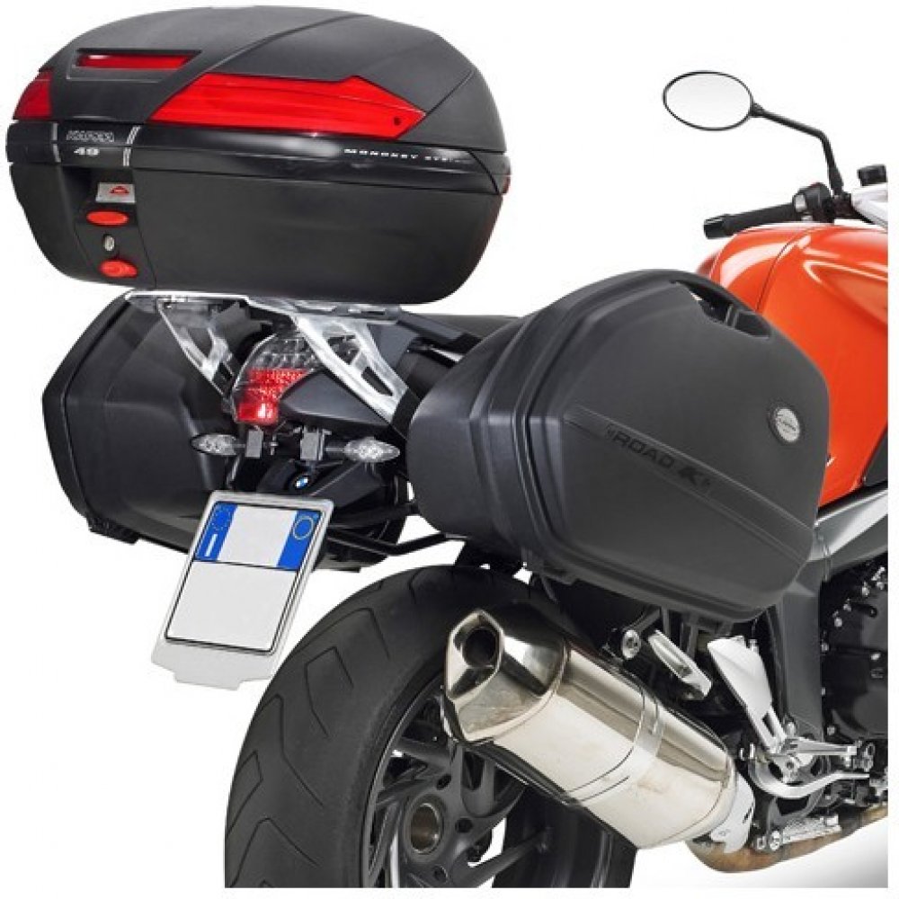 Specifický rychle demontovatelný držák bočních kufrů K33 / V35. Při montáži nutno posunout blinkry z jejich originální pozice.Některé obrázky u produktů mohou být ilustrační. U většiny produktů je přiložen manuál. Kompletní obsah dodávky a přesný vzhled, způsob montáže a maximum informací zjistíte z přiloženého manuálu.