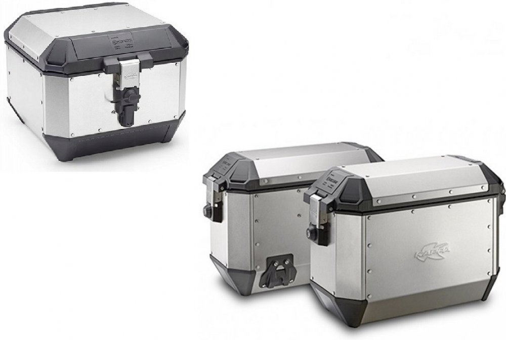 Kufr na motorku K'MISSION z hliníku, obsah 44 l. Pohodlně pojme výklopnou helmu.