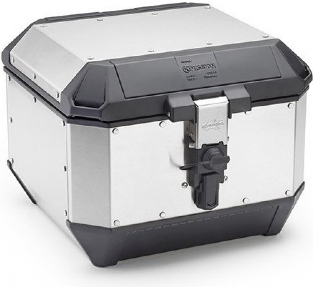 Kufr na motorku K'MISSION z hliníku, obsah 44 l. Pohodlně pojme výklopnou helmu.
