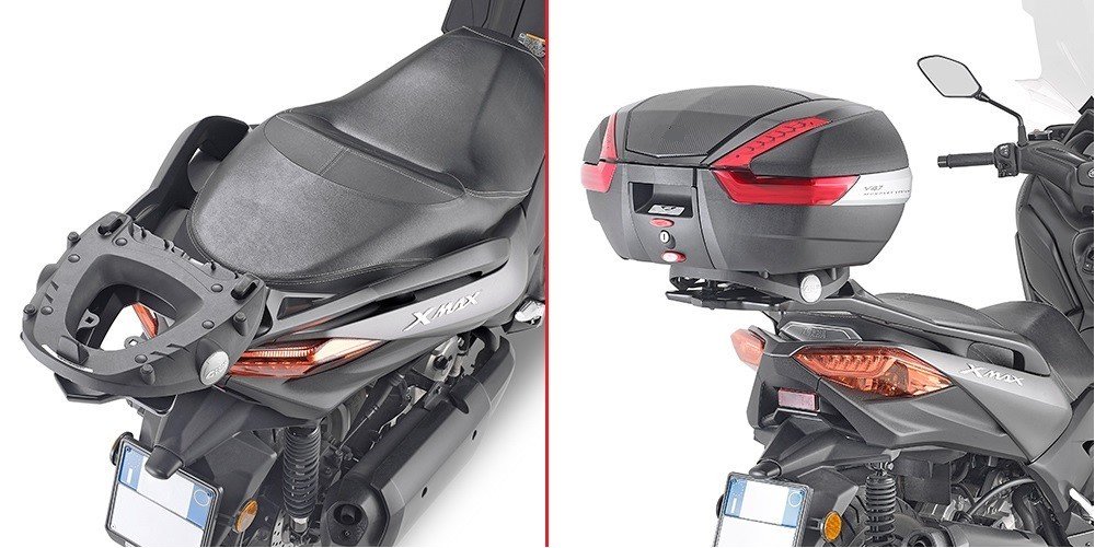 YAMAHA X Max 300 17-20 - je nutné dokoupit plotnu KM5, KM9A nebo KM9B MONOKEY, nebo KM5M a KM6M pro MONOLOCK / případě použití plotny KM9A, KM9B nelze montovat zadní brzdové světlo do kufru, a nelze rovněž použít dálkové ovládání kufru / pro montáž na originální držák kufru (optional) / maximální povolené zatížení 6 kg