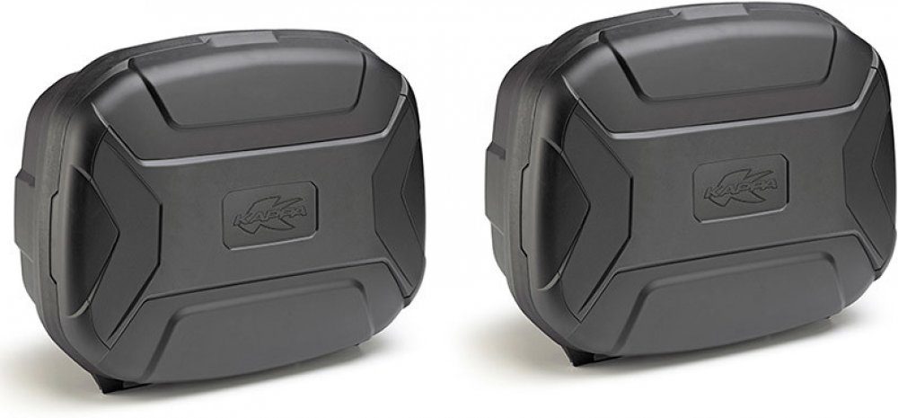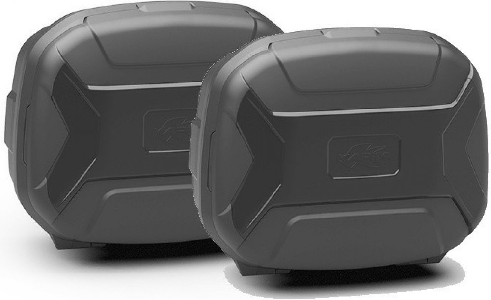 Kufr typu Monokey bez plotny. sada bočních plastových kufrů, sada plastových bočních kufrů, víko vyztužené skelnými vlákny s překrytím s imitací hliníku nebo černé, voděodolné provedení, nosnost max.10kg, rozměry: 43,4x53,8x24,8 cm, cena za 1pár