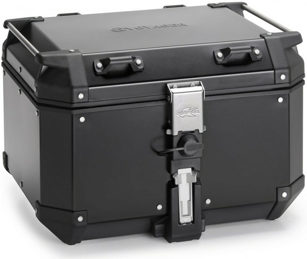 Horní motocyklový kufr KAPPA K'VOYAGER z černě lakovaného hliníku a obsahem 48 litrů.