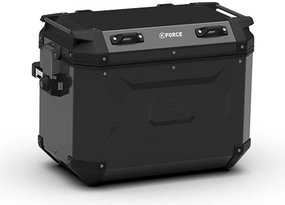 Sada bočních kufrů KAPPA K'VOYAGER z přírodního , černě lakovaného, hliníku, skládající se ze dvou různých objemů: 37 l a 48 l.