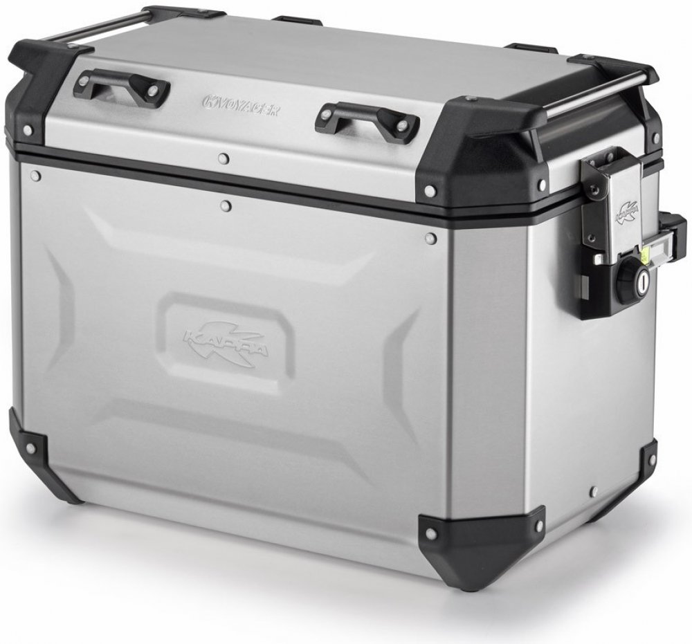 K'VOYAGER je 48 litrový přírodně šedý hliníkový boční kufr na levou stranu motocyklu.