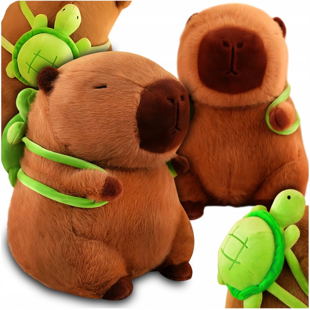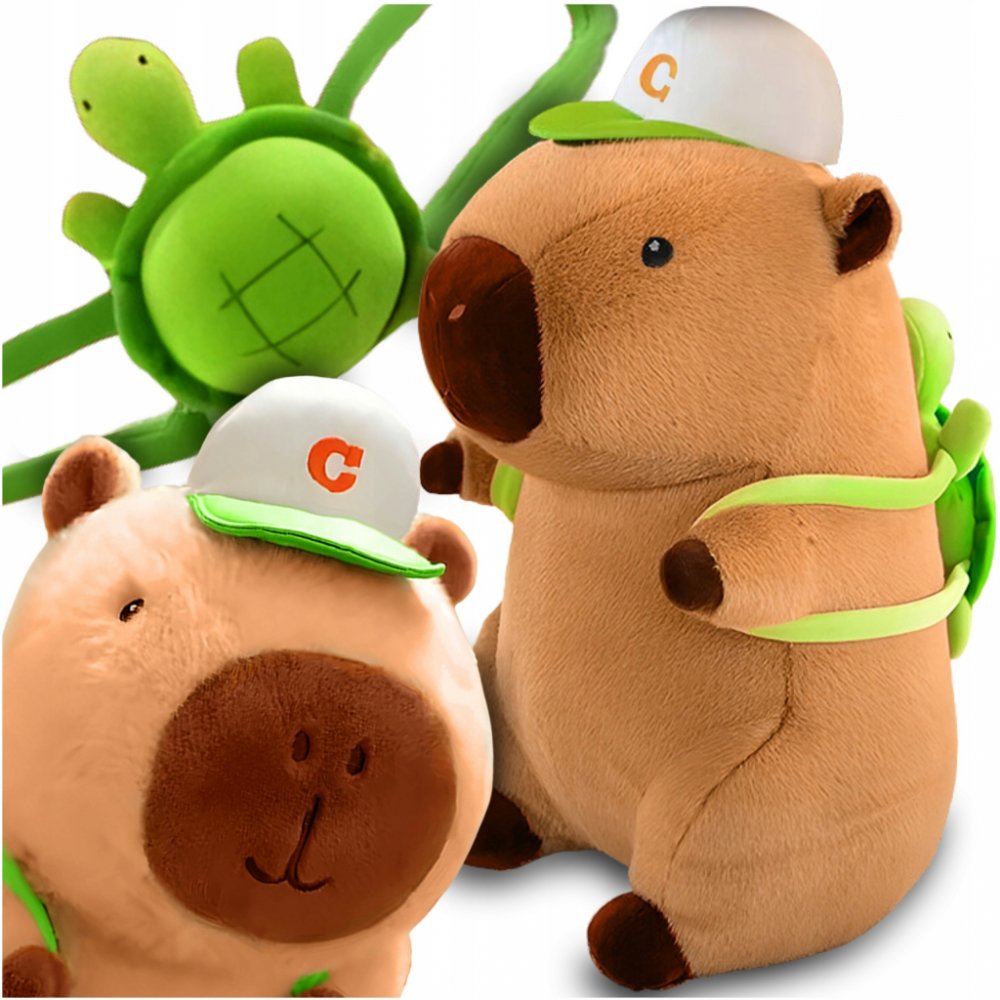 KAPYBARA KRÉMOVÁ PLYŠÁK S BATOHEM S ŽELVOU, SET PLYŠÁK 26 CM