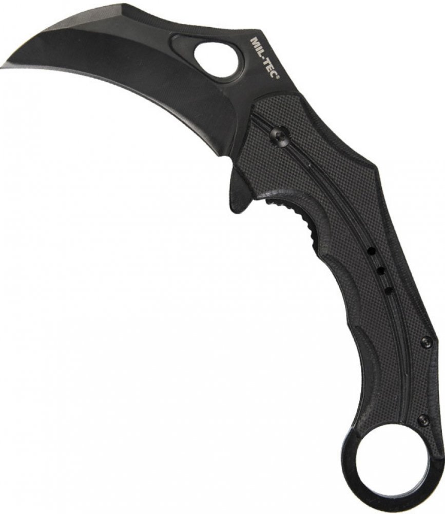Mil-Tec karambitové 80 mm 180 mm 125 g 100% ocel (3cr13) rychlé otevření Plast s flipper otevíráním s hladkým ostřím