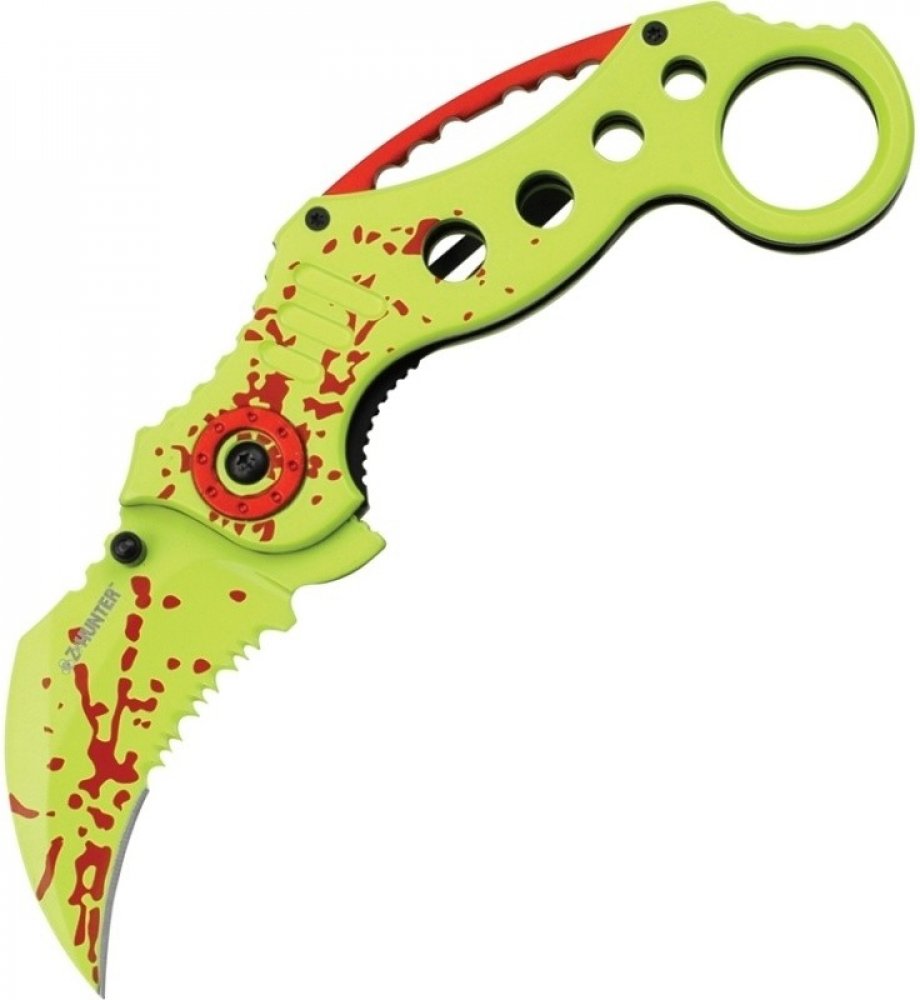 Díky krožku na konci střenky Vám nemůže tento kapesní nůž Karambit vyklouznout z ruky a padne pěkně do dlaně.