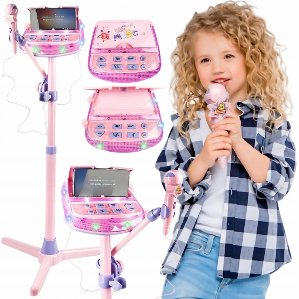 KARAOKE SET PRO DĚTI MP3 PŘEHRÁVAČ MIKROFON STATIV NA dárek RŮŽOVÝ