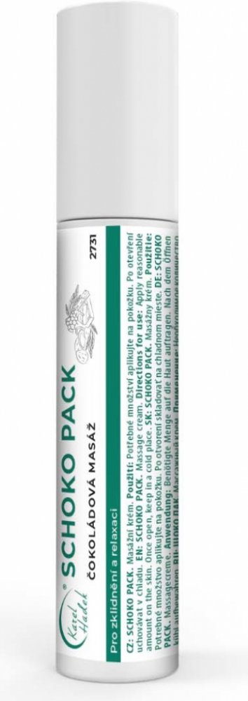 Čokoládový tělový krém pro relaxační masáž a zábal těla. Hnědý, čokoládově vonící krém pro masáž těla a chvíle relaxace. Bambucké, kakaové a mangové máslo tvoří jemnou regenerační kompozici vhodnou pro péči o pokožku celého těla. Příjemná čokoládová vůně je dána obsaženým kakaem a čokoládovým aromatem. Přípravek je velice jemný, nedráždí pokožku, lze jej použít i na ošetřující masáž obličeje. Je dobře smývatelný. Hnědá barva přípravku je dána obsaženým kakaem a postupně při masáži mizí. Krém je vhodný pro používání profesionální i laické.