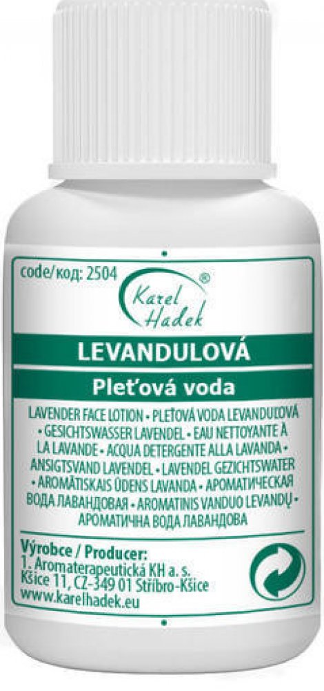 Pleťová voda vhodná pro péči o citlivou až přecitlivělou pokožku. Pleťová voda s jemnou vůní levandule pro péči o citlivou pokožku s uklidňujícím účinkem. Díky obsaženým složkám je vhodná k buněčné regeneraci všech typů pokožky. Napomáhá zklidnit citlivou, podrážděnou či zánětlivou pleť. Obsažené složky se mohou podílet na optimalizaci fyziologické funkce pokožky a tím podpořit tvorbu kožního mazu...