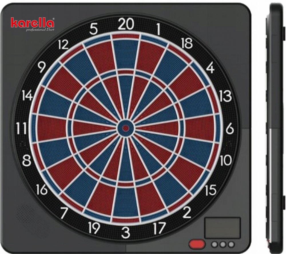 Stejně jako u všech elektronických šipkových terčů Karella odpovídají dvouotvorové (double+triple) segmenty v profesionální červené/modré barvě přesným turnajovým rozměrům. Šipkový automat lze provozovat buď pomocí síťového adaptéru, nebo na 3 baterie AA (obojí není součástí balení). Vhodné pouze pro softové šipky do maximální hmotnosti 18 g.