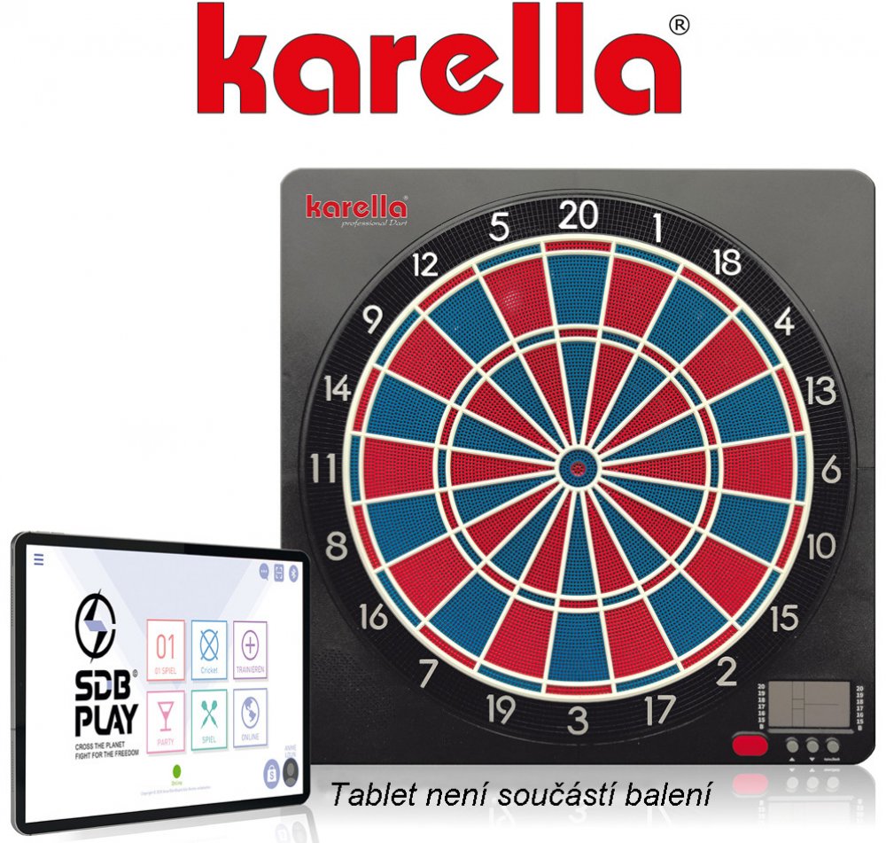 K používání online funkce šipkového automatu CB-Smart potřebujete bezplatnou aplikaci SDB Play 2, která je k dispozici v obchodě Google Play i Apple App Store. Aplikace není součástí zařízení ani značky Karella a je poskytována zdarma společností SDB (www.smartdartboard.com). Zařízení lze používat i bez aplikace, protože LCD displej je zabudován v zařízení.