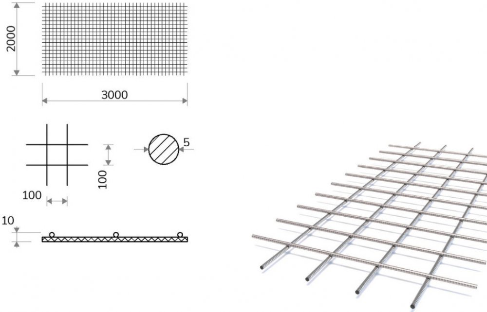 Kari síť s okem 100/100 mm, 2x3 m, průměr 5 mm je svařovaná síť jakosti B500A, která je vyráběná z kruhové tyče s žebírky s velikostí ok 100/100 mm a průměrem drátu 5 mm. S tímto produktem se můžete setkat pod různými alternativními názvy jako třeba: kari síť 100x100x5, kari síť 10x10 5 mm nebo kari síť 5x100x100. Tato kari síť je vhodná pro armování a výrobu železobetonu. Slouží ke kvalitnímu vyztužení základových desek, betonových podlah, nenosných součástí staveb nebo pojezdových ploch. Dále je využívána v zemědělství, chovatelství a zahrádkářství. Je vhodná ke stříhání a ohýbání. Dodávaný rozměr 2x3 m, s oky 100/100 mm, o průměru 5 mm s hmotností 18,48 kg.