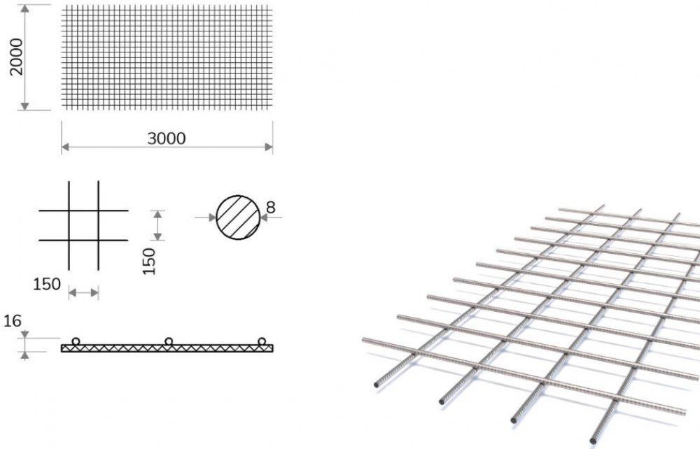 Kari síť s okem 150x150, 2x3 m, průměr 8 mm (KY50) je svařovaná síť jakosti B500B, která je vyráběná z kruhové tyče s žebírky s velikostí ok 150/150 mm a průměrem drátu 8 mm. S tímto produktem se můžete setkat pod různými alternativními názvy jako třeba: kari síť 8/150x150, kari síť 8 150x150 nebo kari síť 8x150x150. Tato kari síť je vhodná pro armování a výrobu železobetonu. Slouží ke kvalitnímu vyztužení základových desek, betonových podlah, nenosných součástí staveb nebo pojezdových ploch. Dále je využívána v zemědělství, chovatelství a zahrádkářství. Je vhodná ke stříhání a ohýbání. Dodávaný rozměr 2x3 m, s oky 150/150 mm, o průměru 8 mm s hmotností 32,39 kg.