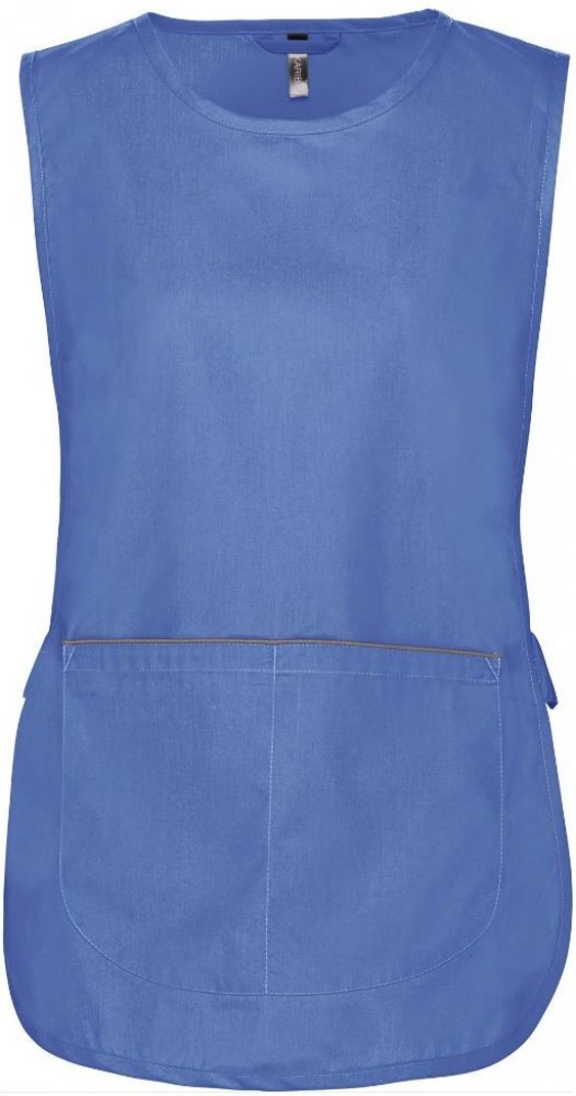 Kariban zástěry letní modré bavlna/polyester univerzální dámské standardní délka 3–4 kapsy 155 g/m² do interiéru