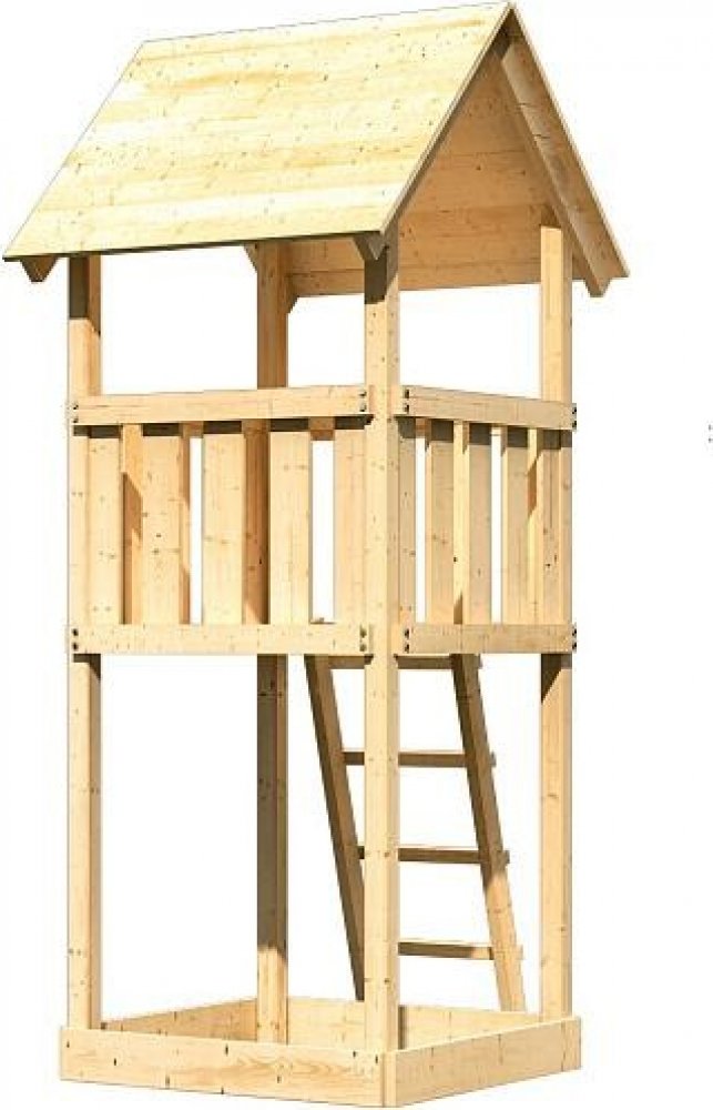 Dětské hřiště KARIBU LOTTI poskytuje dětem spoustu možností ke hrám. Nabízí vše k tomu, aby děti mohly prožít veškeré své hrací fantazie. Stejně jako u všech našich dětských hřišť i u modelu KARIBU LOTTI používáme výhradně to nejlepší smrkové dřevo. Hřiště má nosné sloupy o tloušťce 68 x 68 mm a je vyrobené z dřevěných profilů o síle 18 mm (spoje v systému pero / drážka). Naše dřevo pochází ze vzdáleného severu Evropy a je chemicky naprosto neošetřené. V důsledku toho je prosté všech známých problematických látek. Díky výšce plošiny 125 cm nabízí hřiště KARIBU LOTTI dětem dokonalý výhled na zahradu. Hřiště je standardně vybaveno robustním dřevěným žebříkem se 4 příčkami a pískovištěm pod věží. Dětské hřiště KARIBU LOTTI má samozřejmě certifikát TÜV Nord ověřující bezpečnost výrobku (GS) podle DIN EN 71-1, DIN EN 71-3, DIN EN 71-8 a AfPS GS 2014.