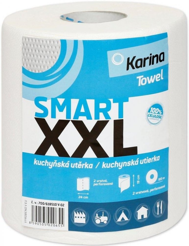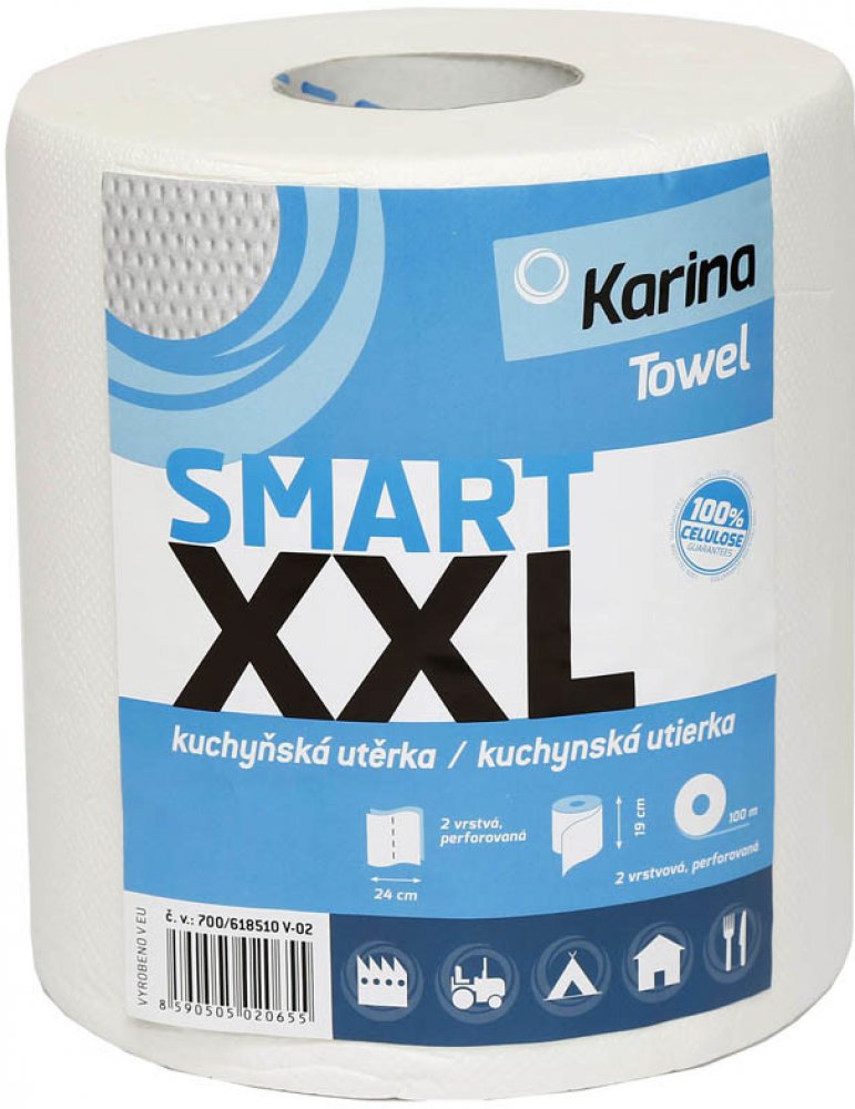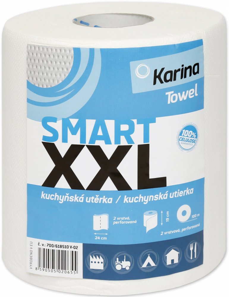 Jedna kuchyňská utěrka XXL má délku návinu jako 10 standardních roliček kuchyňských utěrek.