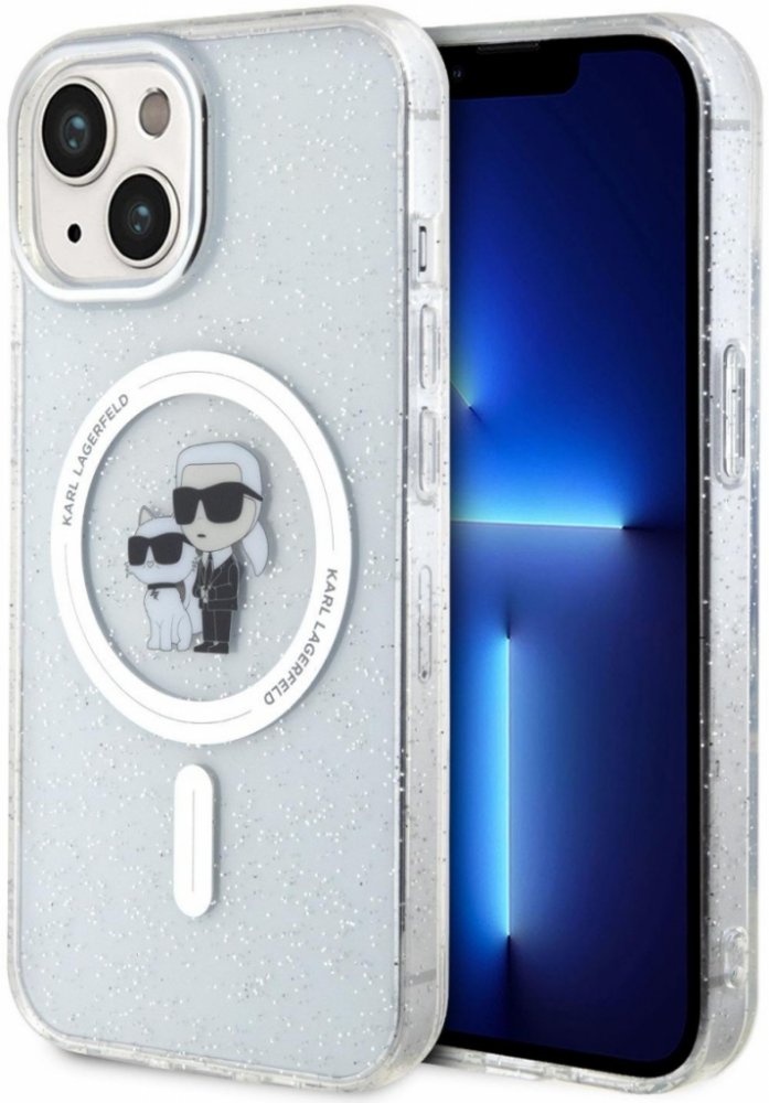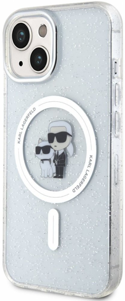 Karl Lagerfeld IML Glitter Karl and Choupette MagSafe iPhone 15 čiré