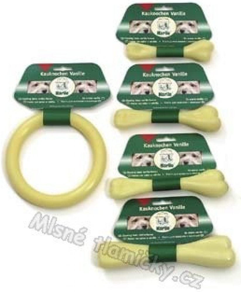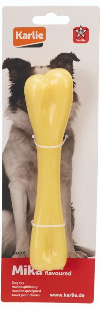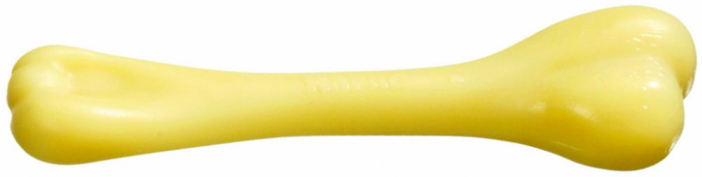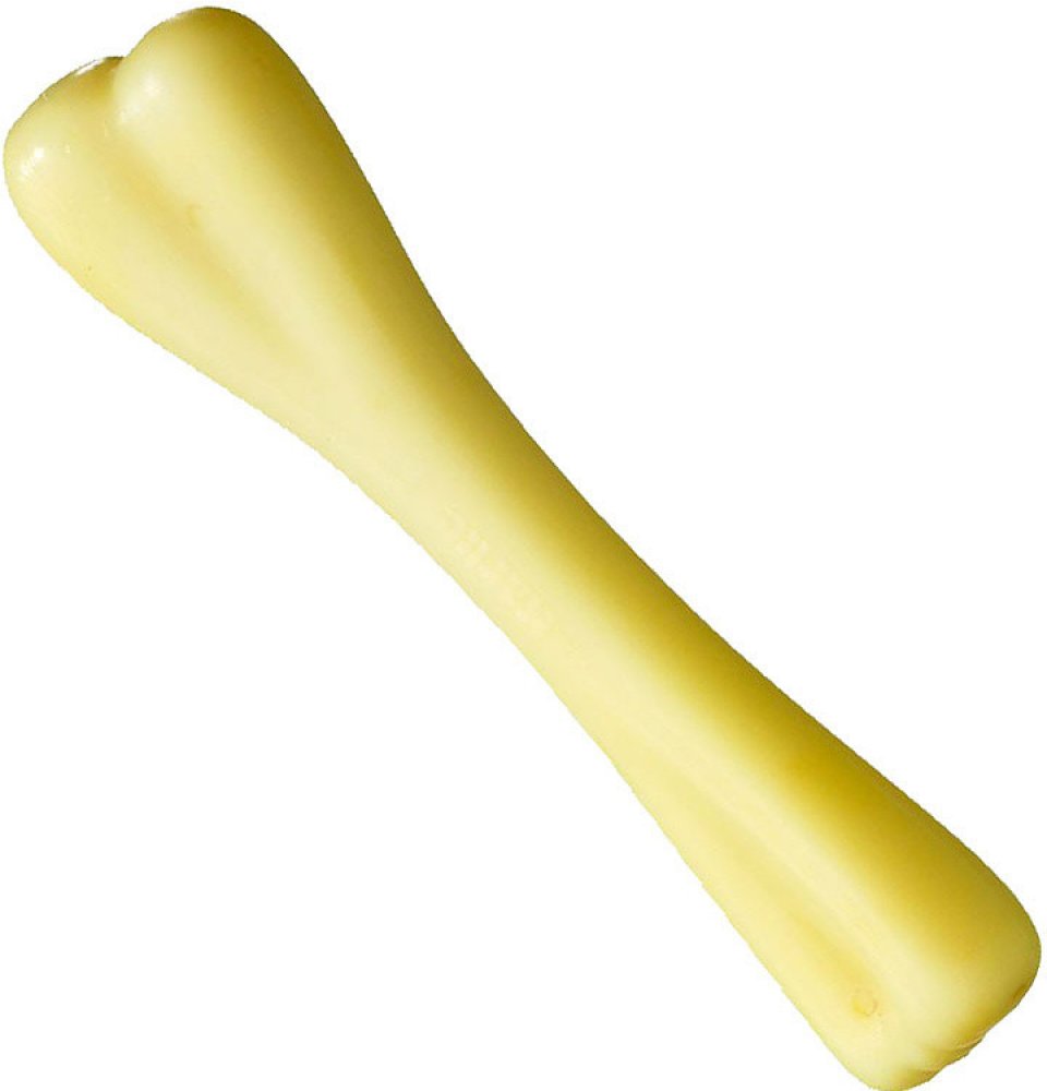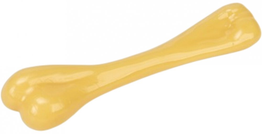 Pevná žvýkací kost vyrobená z odolného nylonu. Kost je vhodná pro zubní péči. Při žvýkání se trvale tvoří rýhy, které odstraňují zubní kámen. Vanilková příchuť, bez alergenů.
