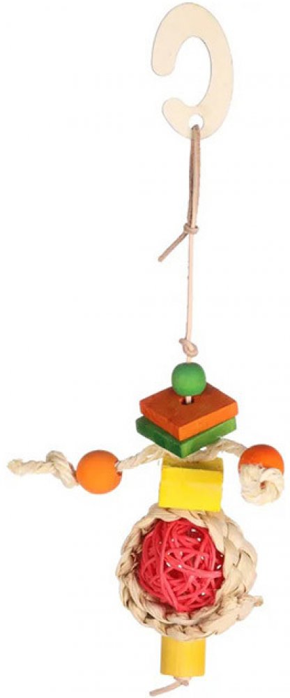 Karlie-Flamingo hračka pro hlodavce Faruk Mix závěsná se dřevem ratanem kůží a sisalem 13 x 4 x 20 cm