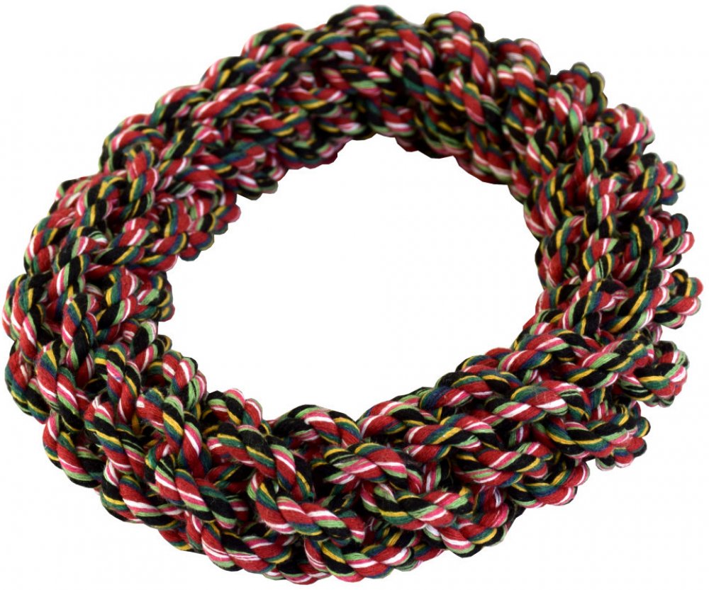 Hračka pes Kroužek přetahovací bavlna 20cm KAR 1ks - Pletený bavlněný kroužek, který je určen ke žvýkání a přetahování. Pomáhá v dentální péči. - Pletený bavlněný kroužek je vytvořen ke žvýkání a přetahování. Hlavní funkcí kroužku je výpomoc v dentální péči. S touto hračkou si tedy užijete spoustu zábavy a zároveň přispějete ke zdravějšímu a odolnějšímu chrupu pejska.