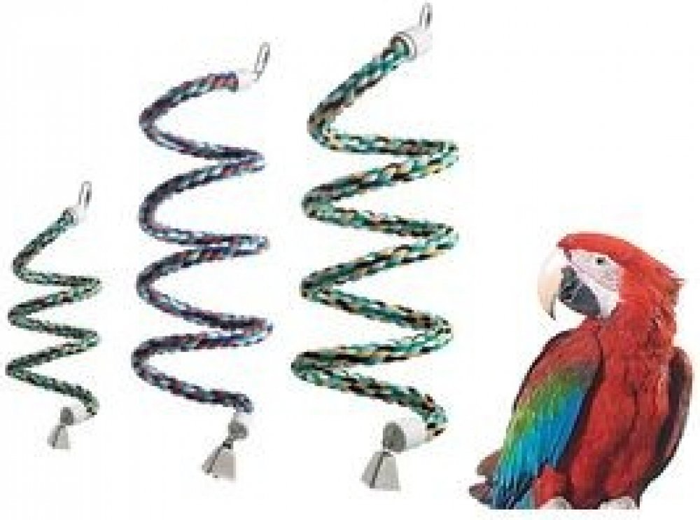 Spirála je tvarovatelné bidlo z měkkého provazu, kterým prochází silný drát. Díky drátu lze bidlo jakkoli upravit a zprohýbat, měnit jeho tvar. Na jednom konci má karabinu k zavěšení na klec a na druhém konci je zvoneček. Papouška můžete překvapit novými překážkami.