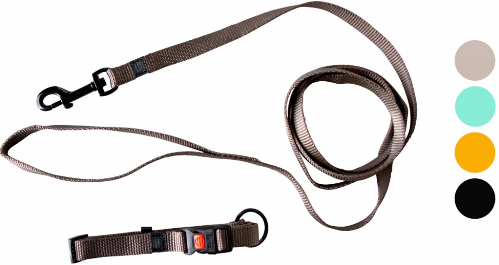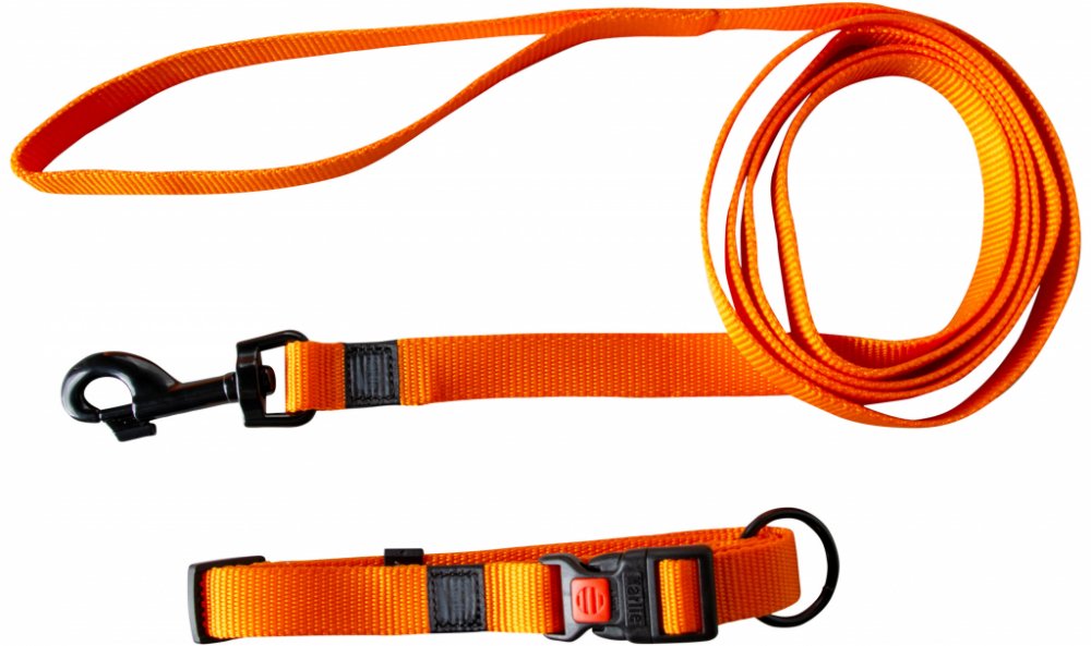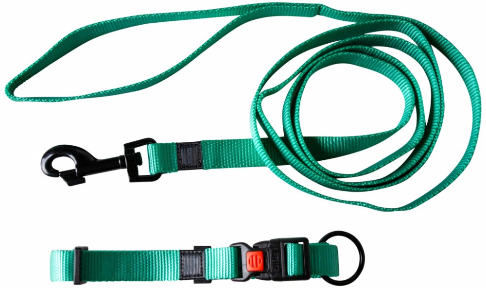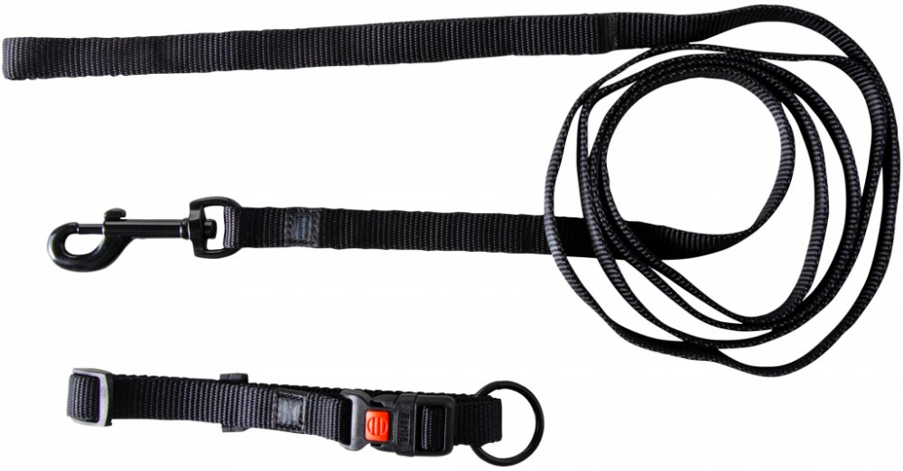 Karlie® Obojek a vodítko pro psy Obojek plynule nastavitelný – dokonale se přizpůsobí obvodu krku Snadné otevírání a zavírání díky robustní bezpečnostní přezce včetně bezpečnostní pojistky Robustní kroužek je připevněn v blízkosti zapínání; aby se minimalizoval tlak na hrtan při silnějším tahu Materiál Obojek: nylon, plast, kov Vodítko: nylon, kov Rozměry Obojek: cca 30–45 x 1,5 cm Vodítko: cca 100 x 1,5 cm Hmotnost Obojek: cca 16 g Vodítko: cca 56 g