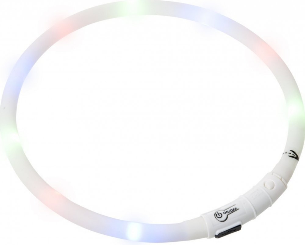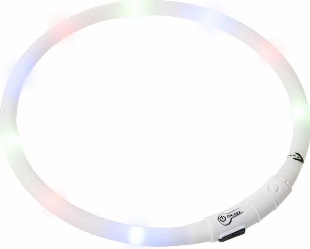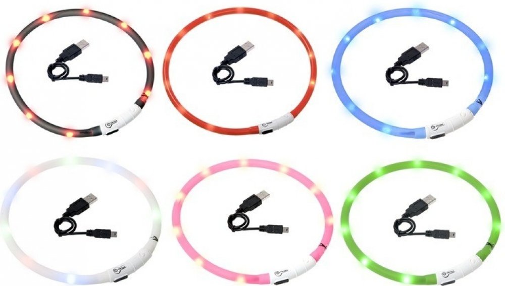 Silikonový obojek Visio Light v sobě ukrývá LED diody, které mohou nepřetržité červeně svítit nebo blikat. Režim "trvalé svícení" je dlouhý cca 3h na jedno nabití. Obojek lze zastřihnout na libovolný obvod krku, takže pejsky neškrtí a ani jim ...