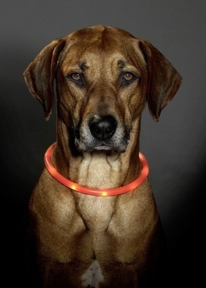 Odolný a svítící obojek německého výrobce Karlie je určen k ochraně psů v šeru, mlze nebo jinak snížené viditelnosti.