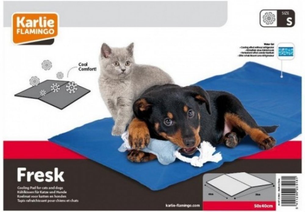 Chladící podložka pro psy i kočky. Dopřejte Vašemu mazlíčkovi pohodlí i v parných letních dnech. Chladící efekt začíná při kontaktu zvířete s podložkou. Dochází ke vzniku endotermické reakce, při které se spotřebuje teplo, které mazlíček vydá. Tato endotermická reakce trvá několik hodin. Podložku není třeba před použitím chladit. Při vyšších teplotách (nad 25°C) doporučujeme vložit podložku před použitím do lednice pro super chladivý účinek. Podložka se sama uvede do původního stavu, jakmile ji zvíře opustí. Neperte v pračce, stačí ji přejet vlhkým hadýrkem. Ideální využití je například do aut.