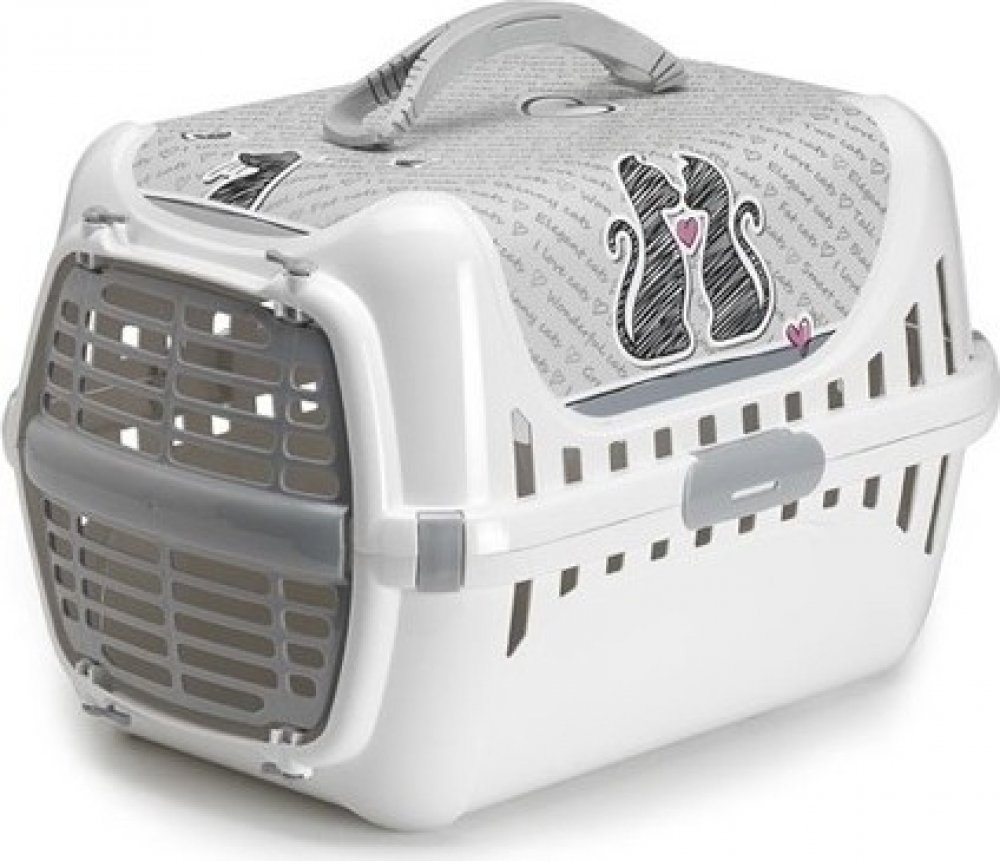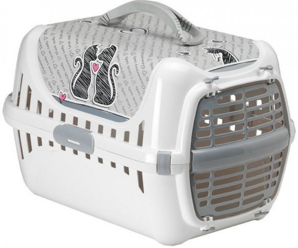 Karlie-Flamingo Přepravka pro kočky Trendy Cats In Love - Praktická přepravka pro kočky. - **Přepravka pro kočky Trendy Cats In Love** Krásná přepraka pro kočky v jedinečném designu. IML tisk s odolností proti poškrábání a UV záření. Měkká rukojeť pro snadnější přenášení. Max. nosnost: 5 kg Rozměry: 31x54x34cm