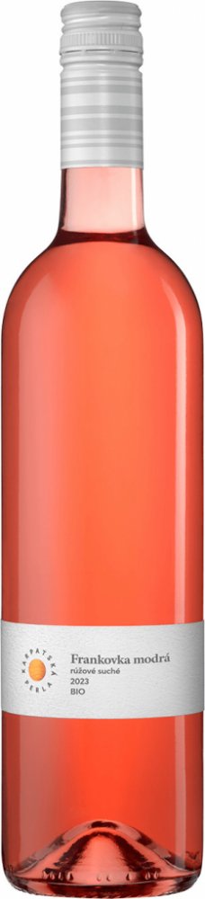 Slovenské suché růžové víno s chráněným označením původu z vinařství Karpatská Perla. Odrůda Frankovka modrá, ročník 2023, Malokarpatská vinařská oblast, Modra, vinice Šajby.