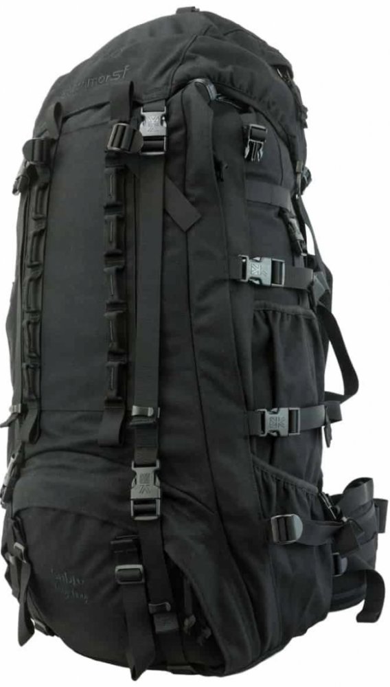 Boční části jsou jednak sepnutelné ZIPem, na který lze v případě potřeby připnout další kapsy Karrimor PLCE a navýšit tak objem o 2x 12,5l. Batoh sám o sobě nabízí v boční části celkem 4 kapsy (2 na každé straně). Jedna je ve spodní části a druhá, jištěná popruhem v cca 2/3 výšky batohu. Na každém boku je umístěn také ZIP zajišťující zvýšení objemu ze 60l na 100l.