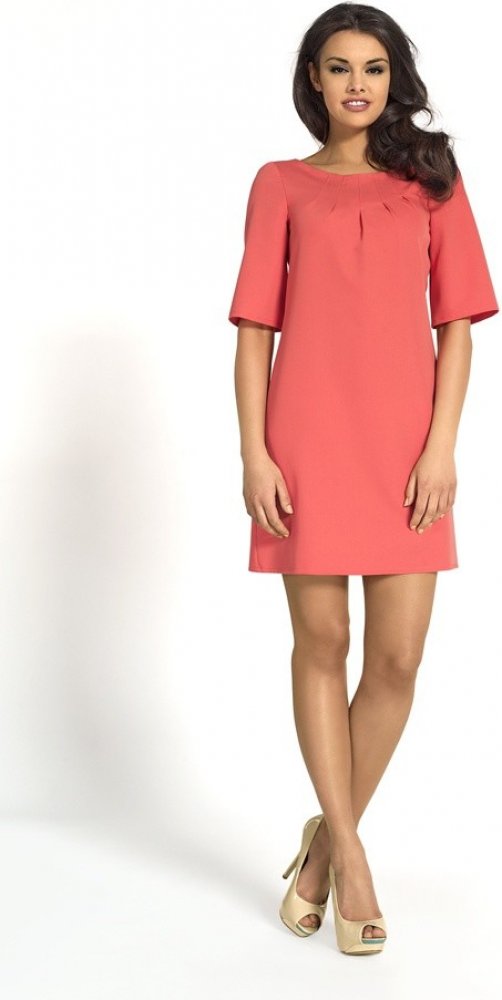 Starorůžová elegance! Mini šaty Kartes mají polodlouhý volný rukáv, decentní zdobení dekoltu pomocí skladů a krásnou starorůžovou barvu. Délka modelu je nad kolena. Materiál je mírně elastický a matný. Šaty mají zapínání na zip.
