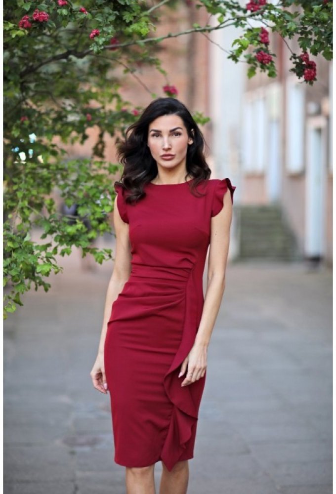 Kartes Moda šaty dámské KM66-4 s volánkem bordó