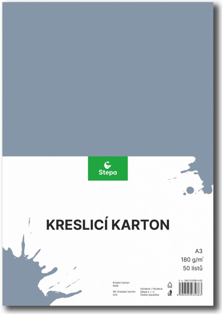 Karton barevný kreslicí A3 420 x 297 mm 50 listů/180g šedý