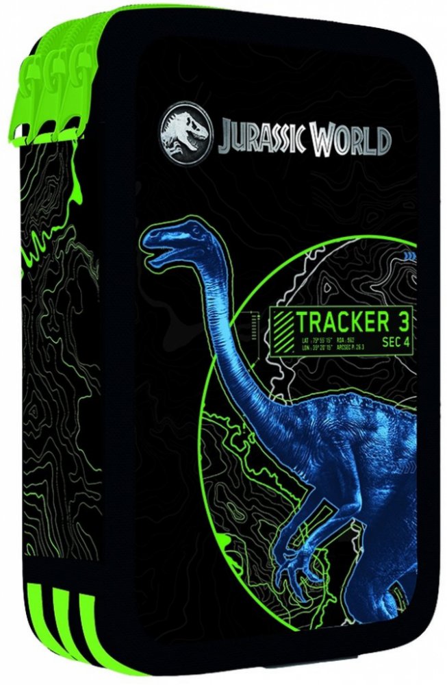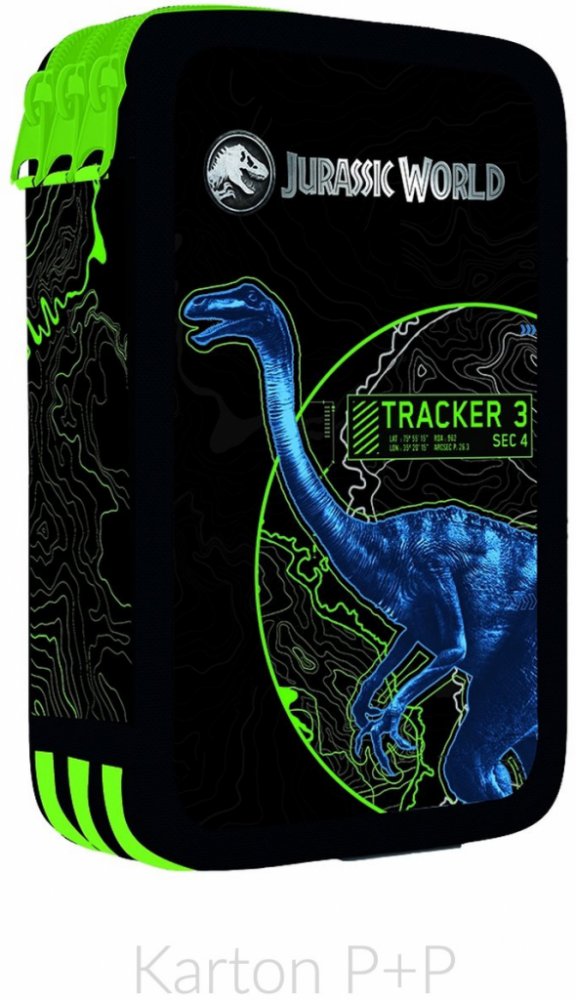 Školní penál třípatrový bez náplně. Penál obsahuje 40 gumových poutek pro uložení všech psacích potřeb a drobností potřebných k výuce. Penál má pevný zip s velkými taháčky pro snadnou manipulaci. Jedno patro je opatřeno průhlednou přihrádkou pro týdenní rozvrh.