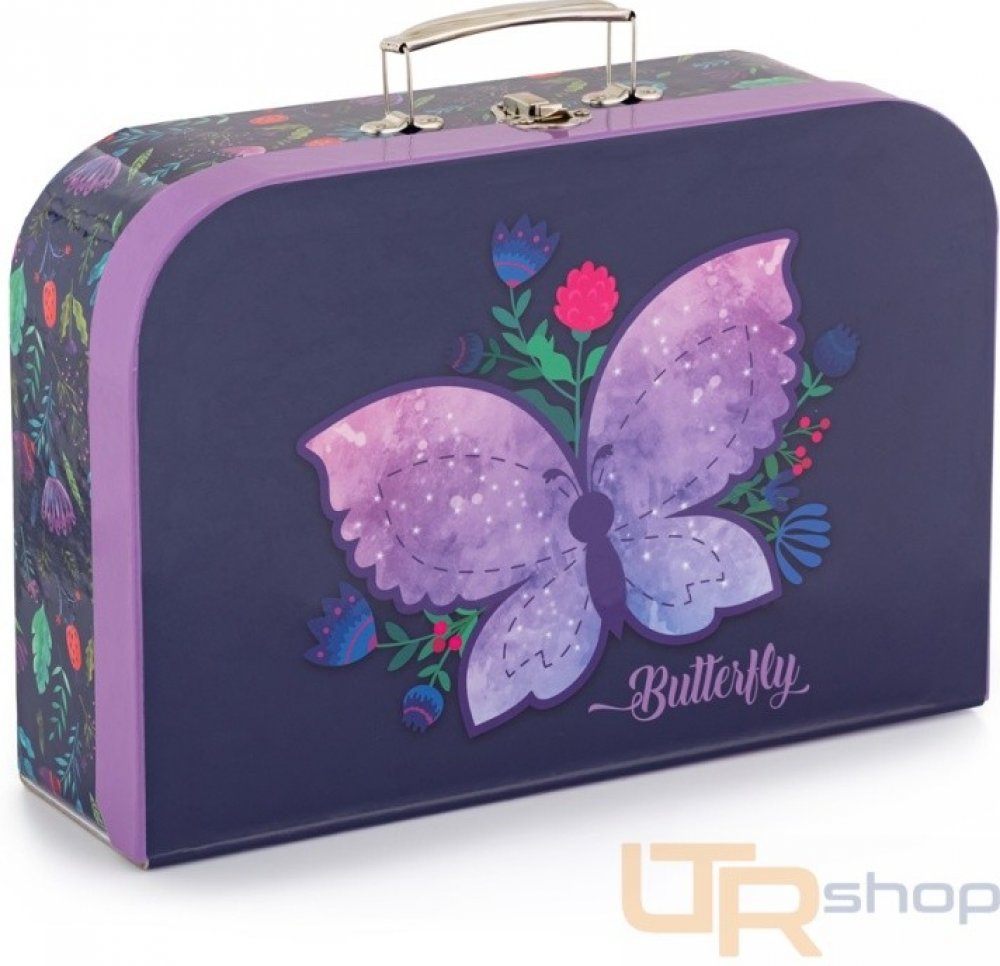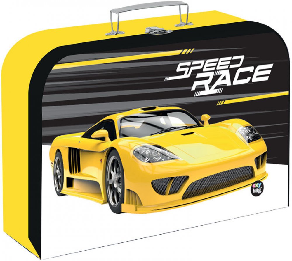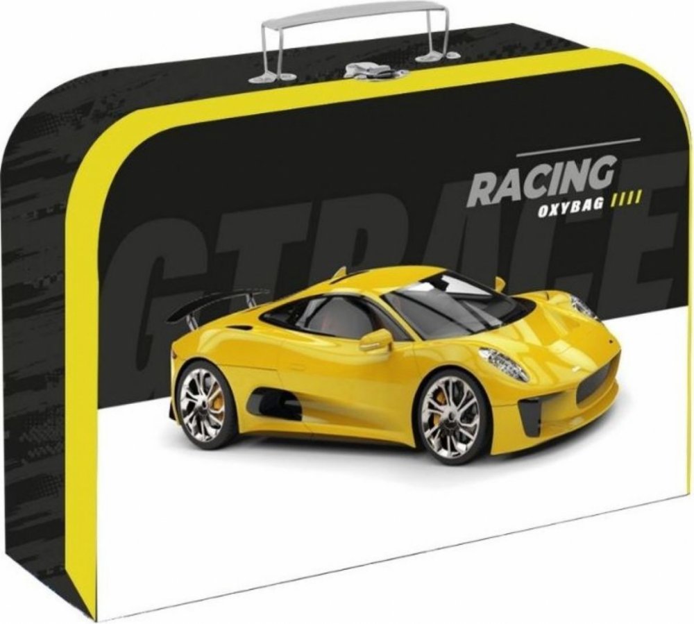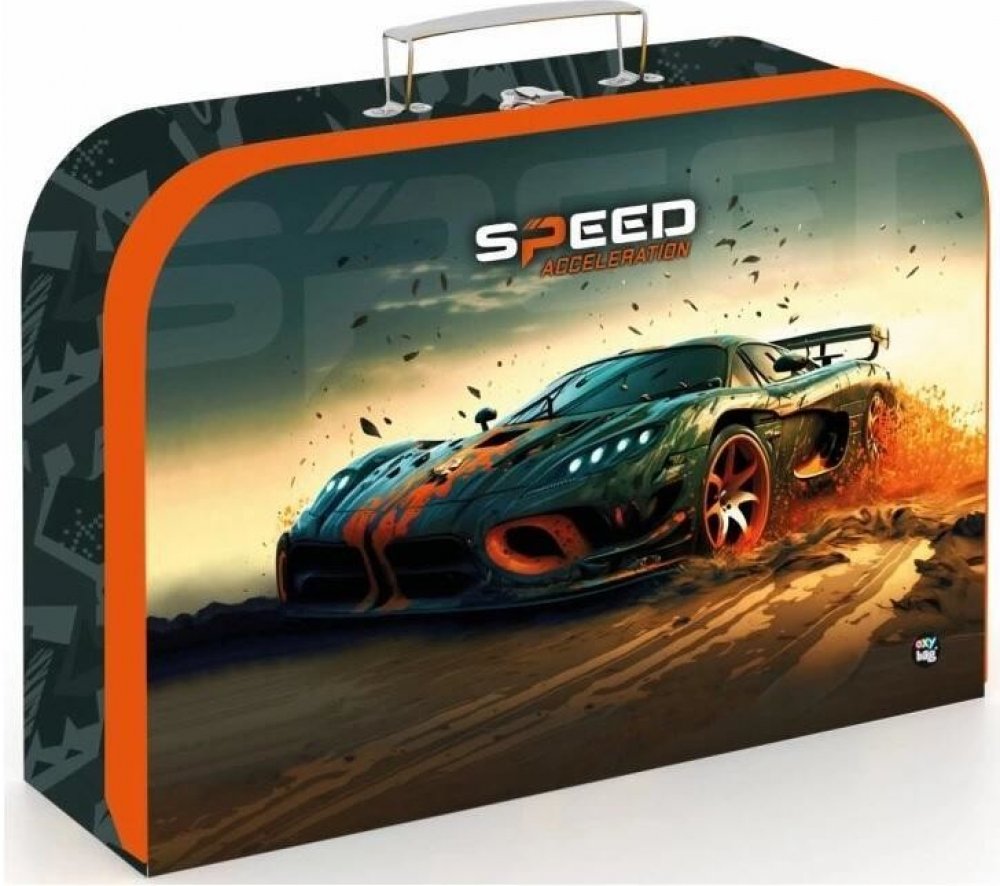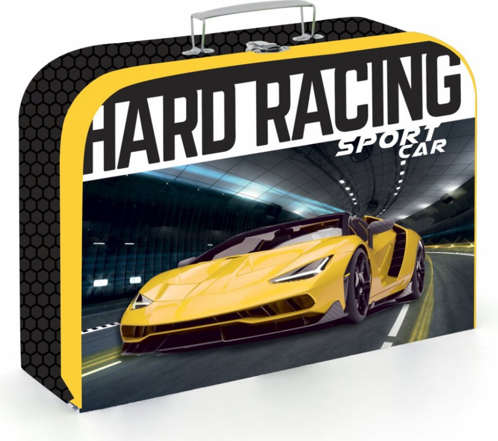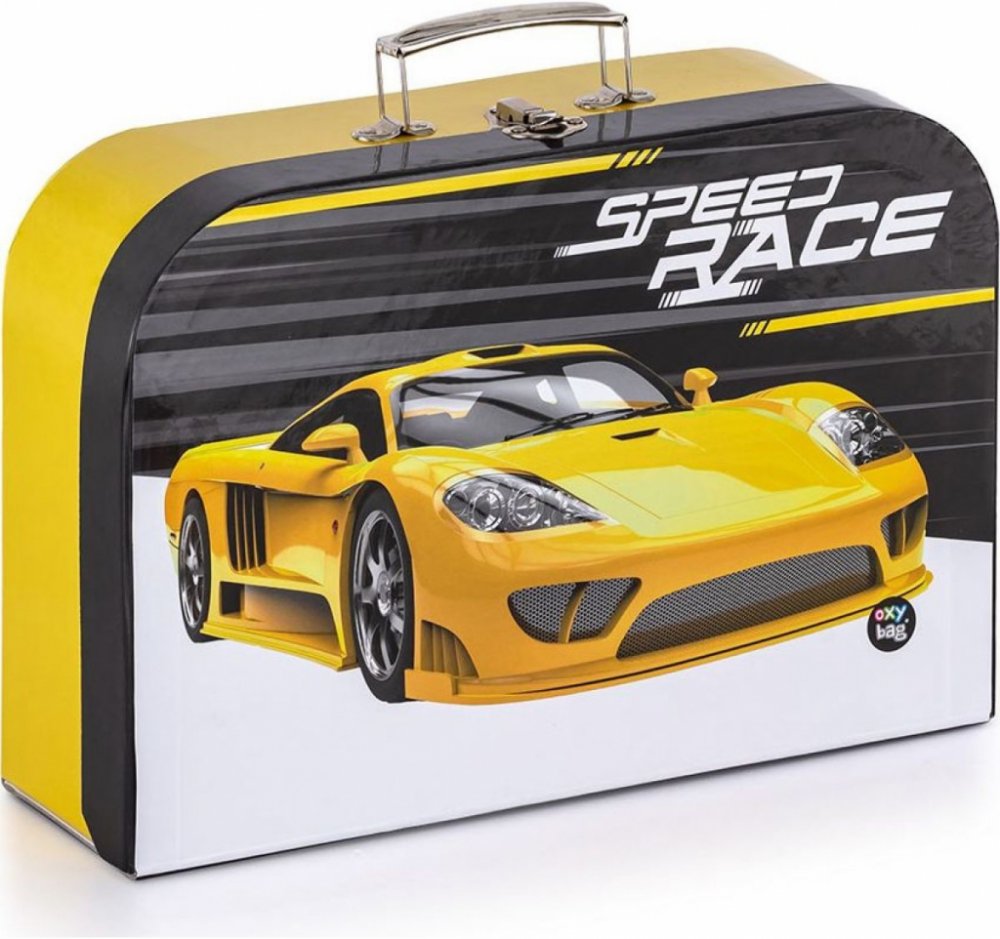 Lamino kufřík na výtvarnou výchovu. Do kufříku se vejde formát A4. Materiál: papír, lepenka, kovový zámeček, kovové nýty. Kufřík lamino 34 cm auto